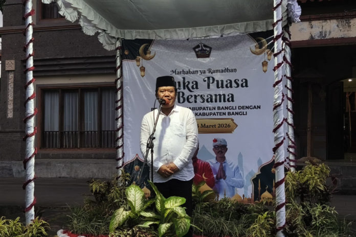 BANGLI, BALIPOST.com – Bupati Bangli Sang Nyoman Sedana Arta menyerukan pentingnya menjaga persatuan di tengah tantangan masa pancaroba dan situasi global yang dinamis. Hal tersebut disampaikannya saat acara buka puasa bersama umat Islam se-Kabupaten Bangli di halaman Kantor Bupati, Kamis (5/3).