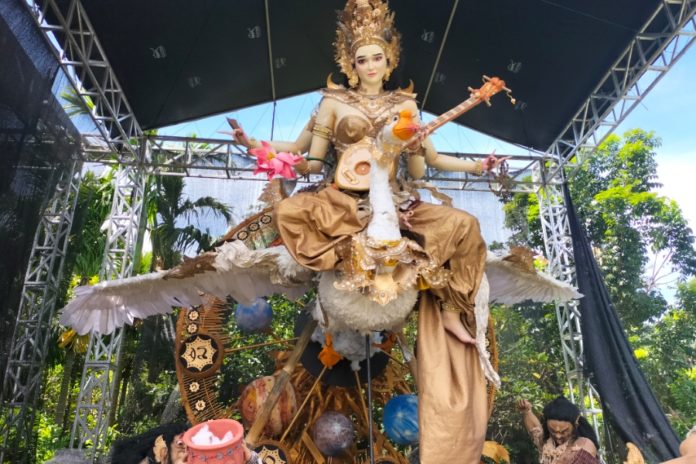 DENPASAR, BALIPOST.com – Ogoh-ogoh seka teruna (ST) Cantika, Banjar Sedana Mertasari, Ubung dengan tokoh utama Dewi Saraswati tumbang pada akhir parade. Ogoh-ogoh yang sebelumnya sempat viral dan meraih nilai tertinggi pada nominasi 16 besar ini dikhawatirkan akan didiskualifikasi mengingat kekokohan struktur menjadi poin penting penilaian.