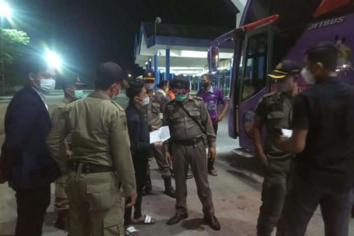 MANGUPURA, BALIPOST.com – Arus kedatangan penumpang di Terminal Tipe A Mengwi, Mengwitani, diawasi ketat oleh Satuan Polisi Pamong Praja (Satpol PP) Kabupaten Badung. Langkah ini dilakukan untuk mengantisipasi masuknya penduduk pendatang (duktang) tanpa identitas dan tujuan yang jelas ke wilayah Badung menjelang rangkaian pengamanan hari raya Idul Fitri.