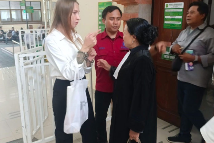 Terdakwa Kseniia Varlamova usai sidang ditemani kuasa hukumnya. (BP/istimewa)