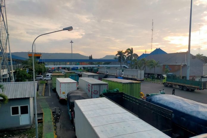 Antrean kendaraan barang untuk masuk ke dermaga sejak Senin (9/3) malam hingga Selasa (10/3) pagi terpantau penuh. Diperkirakan jumlah kendaraan barang akan bertambah dengan makin dekatnya pembatasan yang akan diberlakukan, Jumat, 13 Maret 2026.