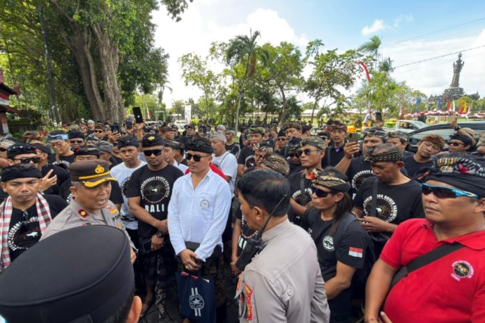 Massa dari FPDPB saat berada di Kantor Gubernur Bali, Kamis (12/3). (BP/win)