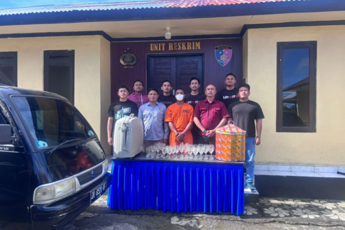 Berdasarkan informasi tersebut, tim Opsnal kemudian melakukan penelusuran hingga akhirnya mengetahui keberadaan pelaku di wilayah Sangeh, Kabupaten Badung. Petugas selanjutnya melakukan pembuntutan dan berhasil mengamankan pelaku di rumahnya.
