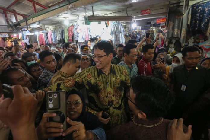 Menteri Keuangan, Purbaya Yudhi Sadewa mengunjungi Pasar Beringharjo, Yogyakarta pada Selasa (17/3). (BP/Antara)