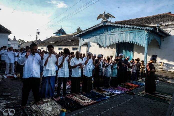 Umat Islam melaksanakan Shalat Idul Fitri 1447 H di halaman Keraton Kasunanan Surakarta Hadiningrat Solo, Jawa Tengah, Jumat (20/3/2026). (BP/Antara)