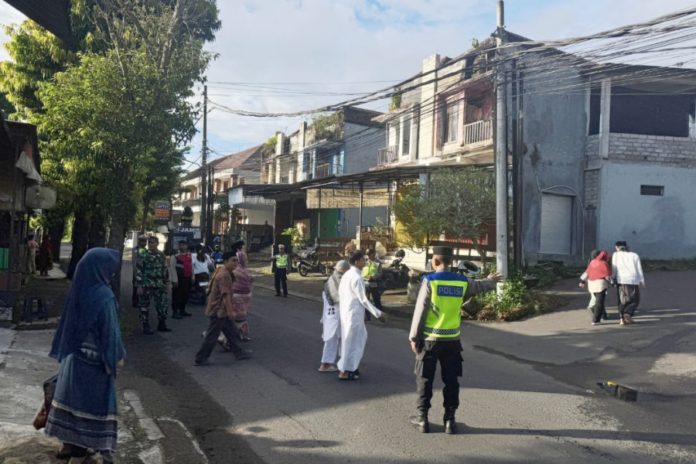 GIANYAR, BALIPOST.com – Personel Polsek Gianyar melaksanakan pengamanan intensif terhadap pelaksanaan Shalat Idul Fitri 1 Syawal 1447 Hijriah yang diselenggarakan oleh Pimpinan Daerah Muhammadiyah Kabupaten Gianyar. Kegiatan ibadah ini berlangsung khusyuk di Mushola Miftahul Jannah, Jalan Astina Selatan, Kelurahan Bitera, Jumat (20/3) pagi.