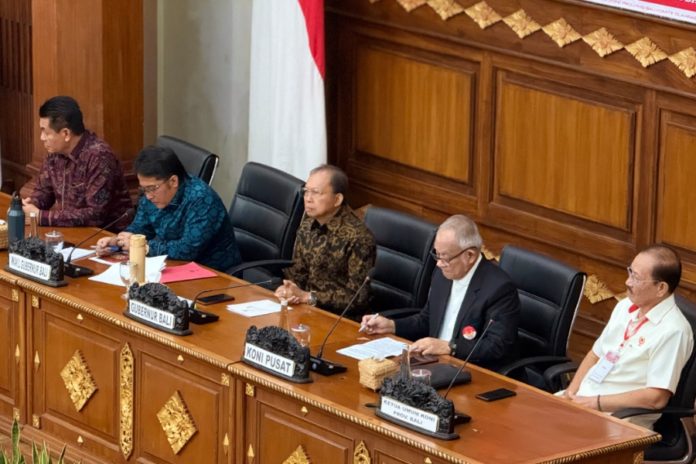 Suasana pembukaan Musyawarah Olahraga Provinsi (Musorprov) KONI Bali 2026, di Gedung Wiswa Sabha Utama, Kantor Gubernur Bali, Senin (23/3). (BP/Istimewa)
