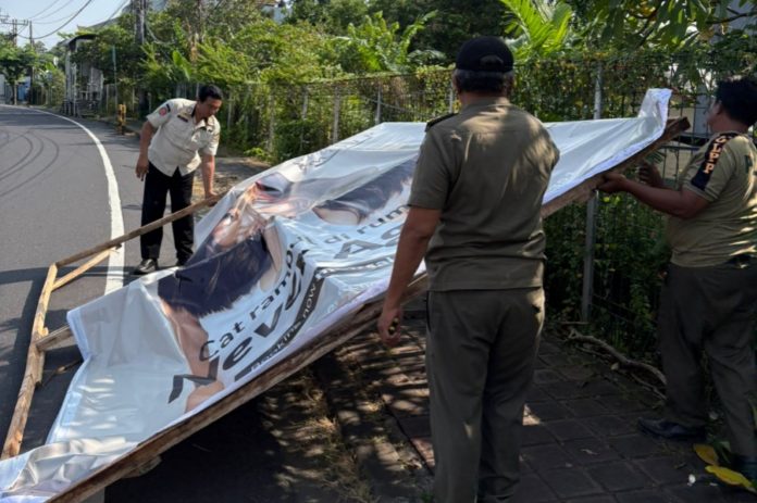 Suasana penertiban spanduk, banner, baliho di sejumlah lokasi di Denpasar. (BP/istimewa)