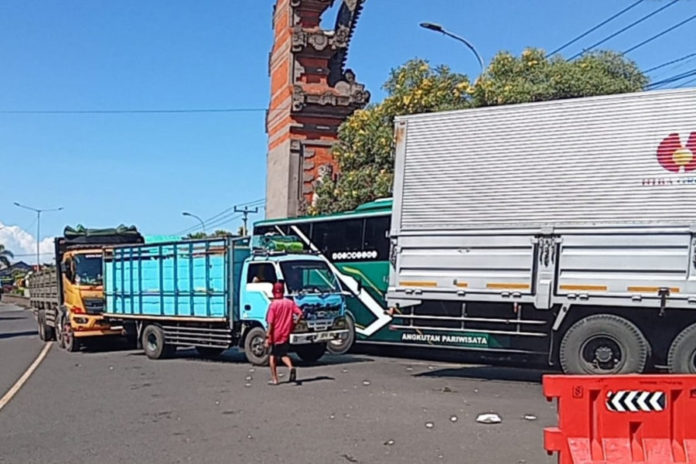 NEGARA, BALIPOST.com – Ratusan kendaraan logistik antre masuk ke Pelabuhan Gilimanuk, Selasa (31/3) siang. Selain memadati areal parkir dalam Pelabuhan Gilimanuk, ekor antrean mencapai luar pelabuhan hingga jalan utama menuju Pelabuhan Gilimanuk. Antrean ini diduga dipicu penerapan kebijakan TBB (tiba-bongkar-berangkat) sejumlah kapal yang bersandar di dermaga Gilimanuk untuk mempercepat antrean arus balik di Pelabuhan Ketapang, Banyuwangi.