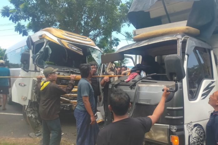 Tabrakan pun tak terhindarkan. Bagian depan kanan truk yang datang dari arah Gilimanuk dihantam microbus. Akibat benturan itu, kedua kendaraan mengalami kerusakan cukup parah di bagian depan. Kaca depan microbus pecah, sementara truk mengalami kerusakan di bagian depan kanan.