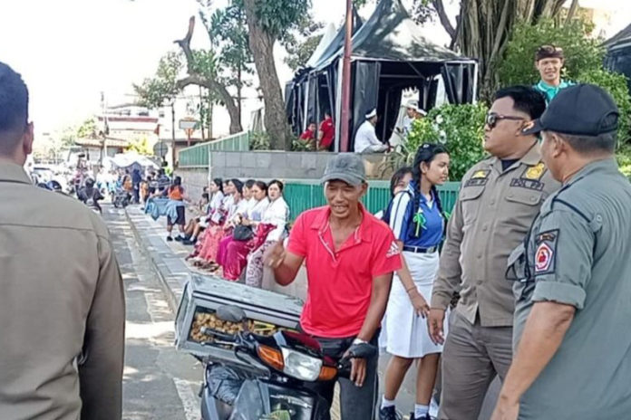 Rangkaian perayaan HUT ke-255 Kota Gianyar dan pelaksanaan GSC serta Pekan Budaya, Satpol PP melarang PKL berjualan di fasilitas umum.(BP/istimewa)