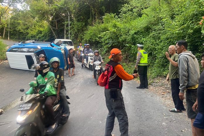 MANGUPURA, BALIPOST.com – Lakalantas tunggal terjadi di tanjakan Goa Gong, Jimbaran, Kecamatan Kuta Selatan (Kutsel), Kabupaten Badung, Rabu (1/4) sore. Mobil bernopol DK 1299 AAD terguling diduga tidak kuat nanjak di jalan tersebut. Kejadian ini dilaporkan masyarakat melalui call center 110 dan anggota Polsek Kutsel langsung ke TKP.