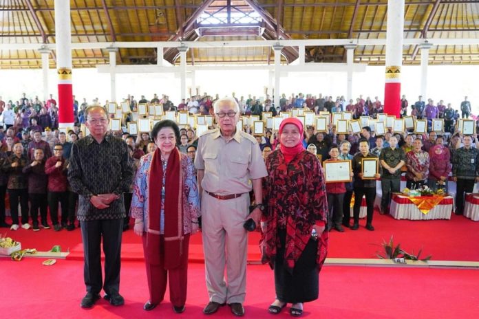SEMARAPURA, BALIPOST.com – Gubernur Bali, Wayan Koster kembali menegaskan komitmennya dalam melindungi dan mengangkat nilai karya anak bangsa dengan mendampingi Presiden ke-5 RI Megawati Soekarnoputri pada penyerahan Hak Kekayaan Intelektual (HKI) Provinsi Bali Tahun 2026.