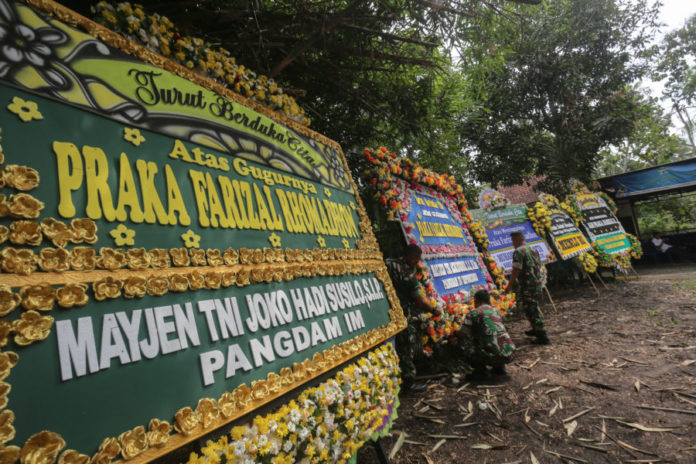 “Alhamdulillah pada hari ini kita sudah melaksanakan pemakaman dari almarhum Kopda Anumerta Farizal Rhomadhon berjalan dengan lancar dan aman,” kata Panglima Komando Daerah Militer (Pangdam) Iskandar Muda Mayor Jenderal TNI Joko Hadi Susilo dikutip dari Kantor Berita Antara.