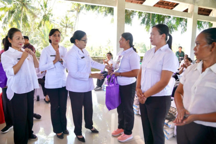 GIANYAR, BALIPOST.com – Ketua Tim Pembina (TP) Posyandu Provinsi Bali, Ny. Putri Suastini Koster, menggencarkan kegiatan membina dan berbagi di Desa Sumita dan Desa Bakbakan, Kabupaten Gianyar, Selasa (7/4). Kegiatan kolaboratif ini bertujuan untuk memperkuat kapasitas kader dalam mengimplementasikan 6 Standar Pelayanan Minimal (SPM) Posyandu guna mewujudkan keluarga yang sehat, cerdas, dan berkualitas.