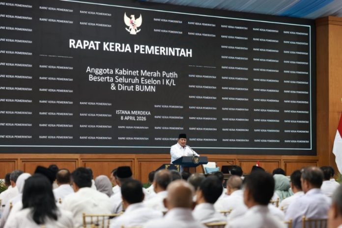 Rapat Kerja Kabinet Merah Putih di Istana Negara, Rabu (8/4). (BP/HO-Bakom RI)