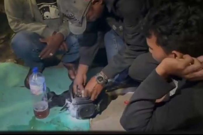 Anggota Polsek Kawasan Pelabuhan Benoa periksa tas milik warga sedang nongkrong hingga larut malam. (BP/istimewa)
