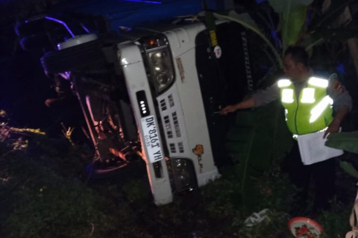 Kasat Lantas Polres Karangasem, AKP I Gusti Agung Putu Mahaputra membenarkan kejadian lakalantas maut tersebut. Kata dia, kejadian tersebut terjadi pada Sabtu malam sekitar pukul 19.30 WITA. Sebelum kejadian, truk nopol DK 8161 YH yang dikemudikan oleh Amos Ngongo Mawu bergerak dari arah selatan (Budakeling) menuju arah utara (Ababi) dengan membawa muatan pasir.