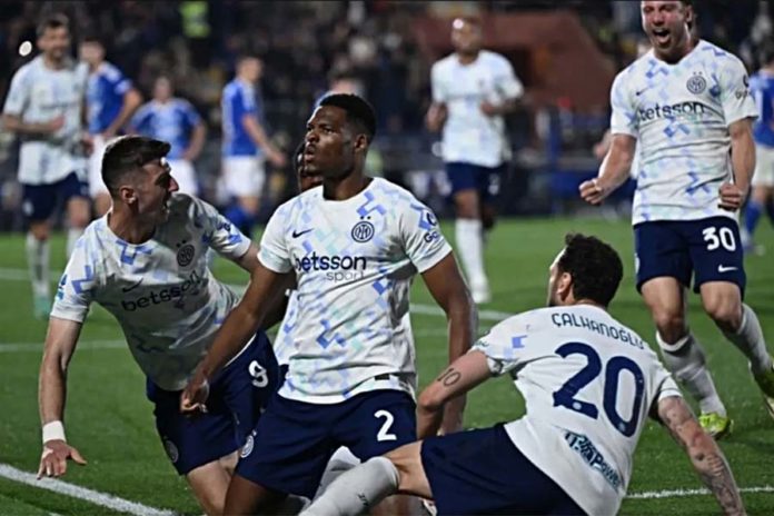 Tak berhenti di situ, Dumfries kembali mencatatkan namanya di papan skor melalui situasi kemelut di depan gawang, memperlebar keunggulan Inter menjadi 4-2.