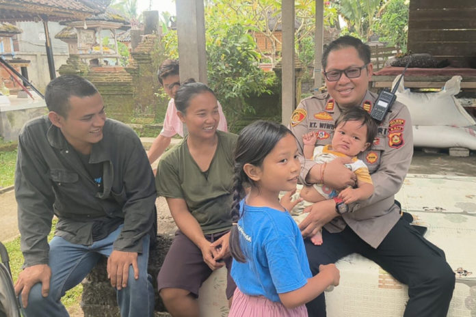 GIANYAR, BALIPOST.com – Kapolsek Tegallalang, AKP Ketut Wiwin Wirahadi, S.H., M.H. melaksanakan kegiatan bakti sosial dengan mengunjungi kediaman balita penderita bibir sumbing di Banjar Bayad, Desa Kedisan, Kecamatan Tegallalang, Kabupaten Gianyar, Rabu (15/4). Jajaran Polsek Tegallalang menunjukkan aksi nyata kepedulian sosial terhadap warga di wilayah hukumnya.