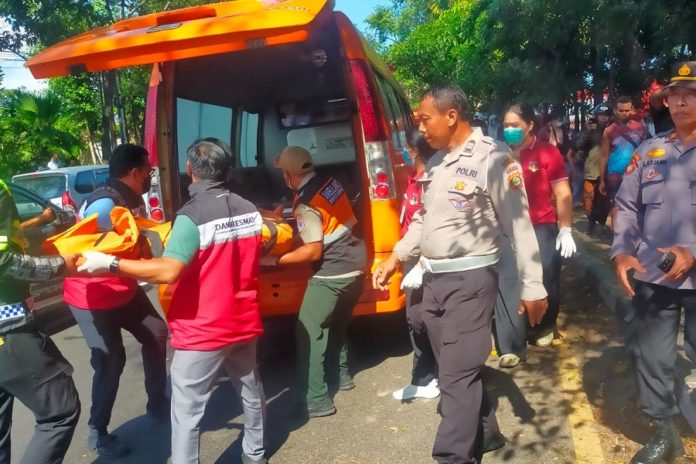 Setelah menerima laporan kejadian itu, anggota Polsek Denpasar Timur dan Satlantas Polresta Denpasar langsung ke TKP. Petugas mengamankan barang bukti motor DK 3927 KAR. Selanjutnya jasad korban dibawa ke RSUP Prof. Ngoerah, Sanglah, Denpasar, menggunakan ambulans BPBD Kota Denpasar.