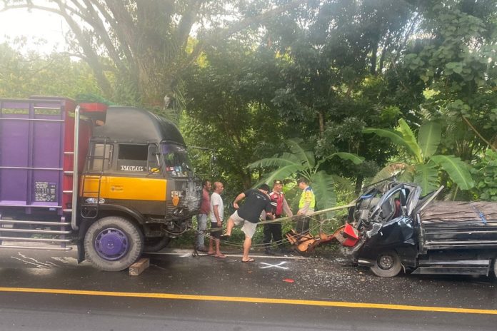“Diduga pengemudi pikap mengambil jalur lawan saat menyalip, sehingga terjadi tabrakan depan dengan truk yang datang dari arah berlawanan,” ujarnya.