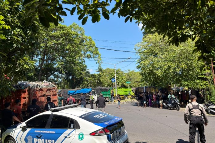 Massa mulai berkumpul sejak pukul 07.00 WITA di Jalan Serangan. Seluruh kendaraan yang bermuatan sampah dikerahkan menuju kantor PPLH Bali–Nusra dengan penutup terpal atau jaring.