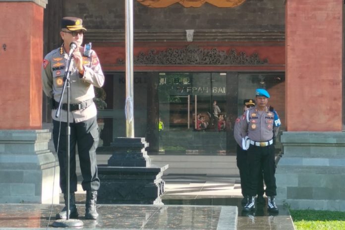 Karoops Polda Bali, Kombes Pol Soelistijono pimpin apel pengamanan Dharma Santhi Nyepi Tahun Baru Saka 1948. (BP/istimewa)