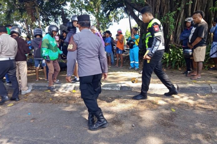Penanganan kasus lakalantas berujung maut di Jalan Bypass Ida Bagus Mantra, Denpasar Timur.(BP/istimewa)