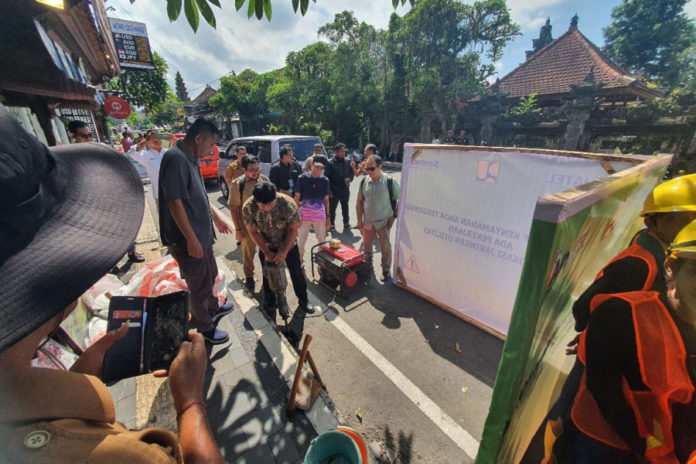 GIANYAR, BALIPOST.com – Kawasan wisata Ubud bersiap tampil lebih estetik dan tertata. Pemerintah Kabupaten Gianyar  bersinergi dengan Asosiasi Penyedia Jaringan Telekomunikasi (Apjatel) melakukan groundbreaking penataan kabel utilitas melalui sistem saluran bawah tanah (underground) di Kelurahan Ubud, Senin (20/4).