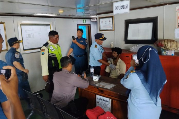 Nakhoda bersama kru segera melakukan koordinasi dan mengevakuasi korban menggunakan peralatan keselamatan. Korban berhasil diangkat ke atas kapal dalam kondisi selamat.