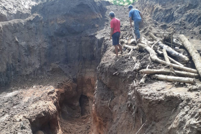 Dinas PUPR Gianyar menangani terowongan saluran irigasi yang jebol di Subak Petak Jeruk.(BP/istimewa)