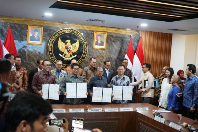 Gubernur Bali Wayan Koster meneken kerjasama strategis pembangunan infrastruktur pengolahan sampah menjadi energi listrik (PSEL) bersama pemerintah pusat di Jakarta, Selasa (21/4). Gubernur koster didampingi Bupati Badung Wayan Adi Arnawa dan Wali Kota Denpasar IGN Jaya Negara. (BP/Istimewa)