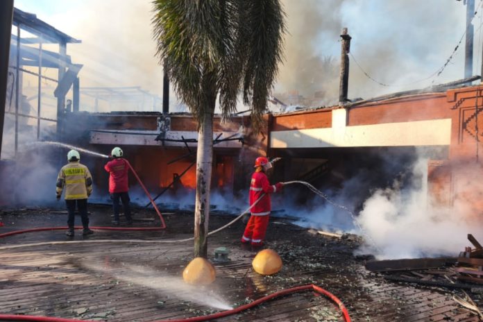 MANGUPURA, BALIPOST.com – Kebakaran hebat terjadi di area Hotel Club Med Bali, Nusa Dua, Kuta Selatan (Kutsel), Badung, Jumat (24/4). Bangunan Agung Restoran ludes dilalap api dan mengakibatkan kerugian Rp5 miliar.