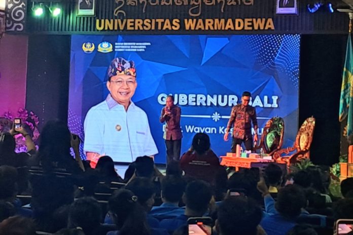 DENPASAR, BALIPOST.com – Gubernur Bali Wayan Koster menegaskan persoalan sampah di Bali telah memasuki tahap darurat. Hal tersebut disampaikannya dalam forum “Koster Menjawab: Menelisik Masa Depan Bali di Tengah Ancaman Krisis Lingkungan” di Auditorium Widya Sabha Utama Universitas Warmadewa, Jumat (24/4).