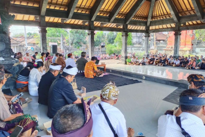 Sosialisasi dan edukasi penanganan sampah di Pura Desa dan Puseh Desa Adat Penarukan, Minggu (26/4). (BP/istimewa)