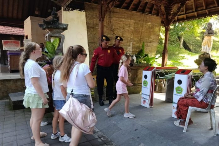 Petugas memberikan imbauan agar seluruh elemen di DTW Tirta Empul bersinergi menjaga nama baik pariwisata Bali dengan tetap mengedepankan keramahan dan keamanan. Tak sekadar berpatroli, Sat Pamobvit juga memanfaatkan momentum ini untuk menyosialisasikan layanan darurat Polri 110.