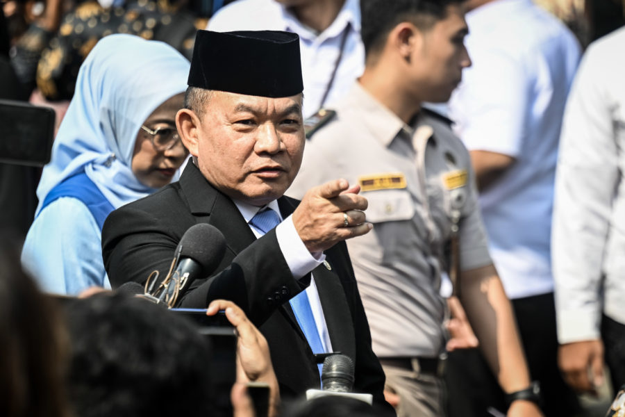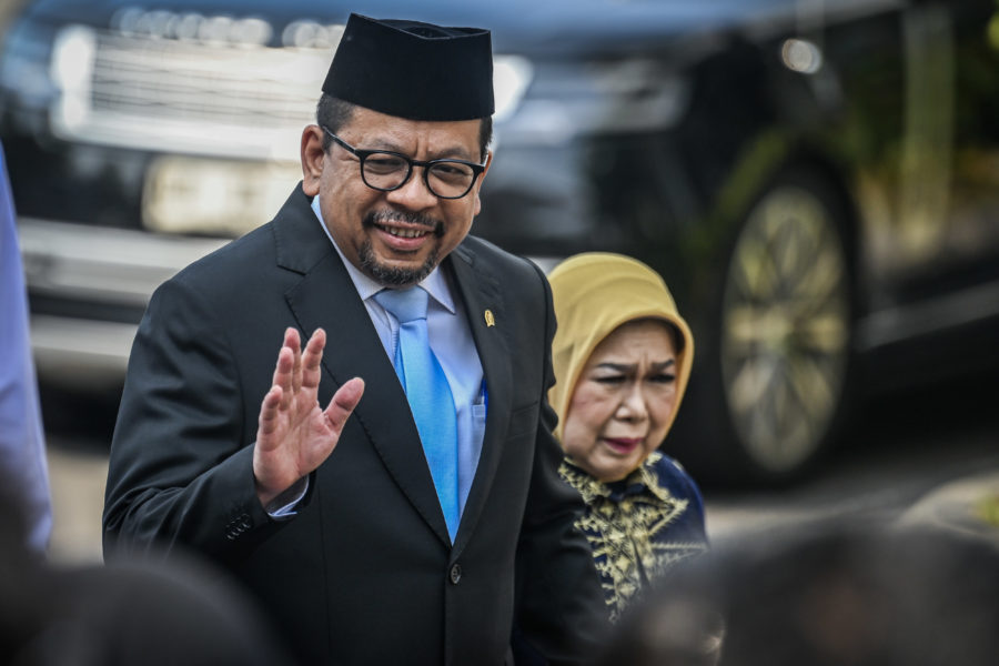 Kepala Badan Karantina Nasional Abdul Kadir Karding menyapa wartawan sebelum pelantikan pejabat baru dalam Kabinet Merah Putih di Istana Negara, Jakarta, Senin (27/4/2026). (BP/Antara)