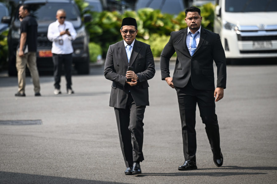 Wakil Menteri Koordinator Bidang pangan Hanif Faisol menyapa wartawan sebelum pelantikan pejabat baru dalam Kabinet Merah Putih di Istana Negara, Jakarta, Senin (27/4/2026). (BP/Antara)