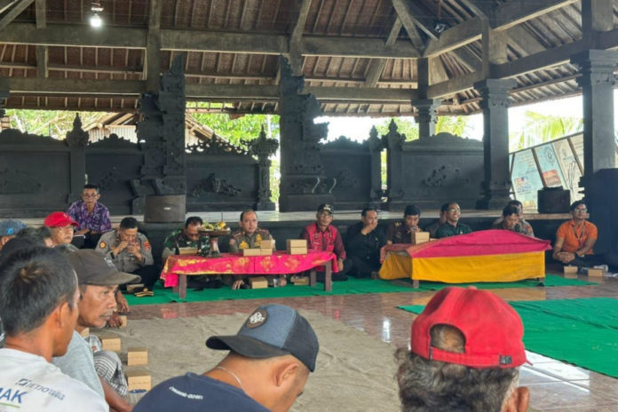 Sosialisasi pemanfaatan ruang kawasan sempadan pantai di Wantilan Pura Taman Sari, Kelurahan Kampung Baru, Selasa (28/4). (BP/istimewa)