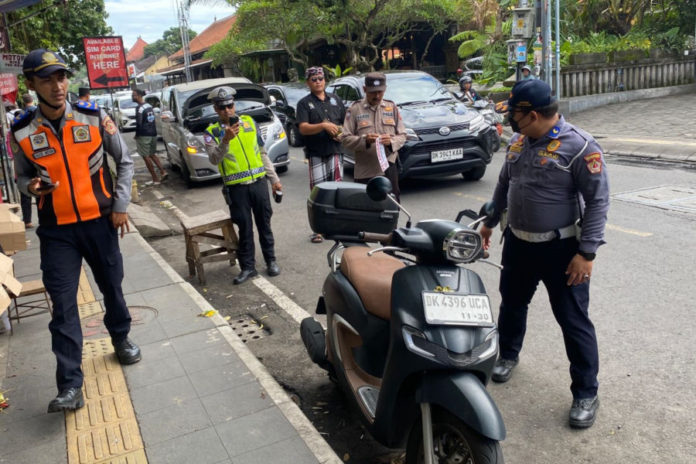 GIANYAR, BALIPOST.com – Kawasan wisata Ubud terus berbenah demi kenyamanan wisatawan dan masyarakat lokal. Sebagai langkah mengurai kemacetan, jajaran Polsek Ubud bersama tim gabungan menggelar aksi penertiban parkir liar di sepanjang Jalan Raya Ubud. Dalam penertiban parkir liar ini, polisi menggunakan sanksi tilang melalui sistem electronic traffic law enforcement (ETLE).