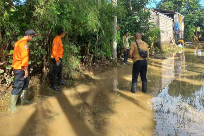 NEGARA, BALIPOST.com – Hujan dengan intensitas tinggi yang mengguyur wilayah Kecamatan Melaya, Kabupaten Jembrana, Senin (27/4) sore, memicu terjadinya banjir di Banjar Tirta Kusuma, Desa Candikusuma. Belasan rumah warga terdampak dari meluapnya air dari sungai dan badan jalan tersebut.