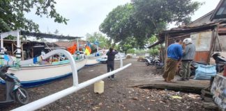Diterjang Ombak Setinggi 4 Meter, Jukung Nelayan Kusamba Dinaikkan ke Badan Jalan