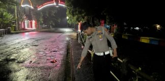 Nekat Melintas, Pemotor Jatuh di Jalan Jebol Selat-Rendang