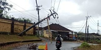 Membahayakan Pengguna Jalan, Tiang Listrik di Jalan Goa Gong Ungasan Hampir...