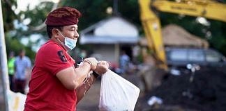Bupati Gede Dana “Ngayah” Angkut Batu di Pura Bukit Gumang