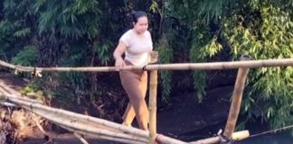 Puluhan Warga dan Siswa di Pendem, Lintasi Jembatan Bambu Rawan Ambruk...