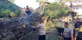 BPBD dan Polsek Payangan Tangani Pohon Kelapa Tumbang di Jalan Raya...