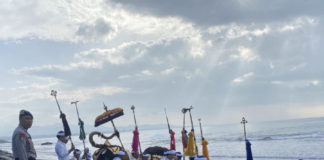 Polairud Polres Gianyar Amankan Jalannya Prosesi Malasti di Pantai Masceti