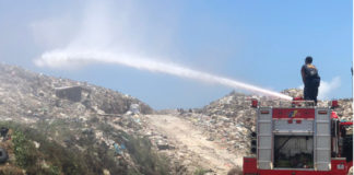 Cuaca Panas, Damkar Denpasar Laksanakan Pendinginan di TPA Sarbagita